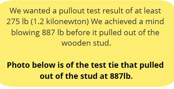 The Brit-Tie wall tie is installed using a patent pending setting tool that is used with an SDSPlus shank drill to screw and countersink the tie. Brit-Tie performs in wood and steel studs, and has been throughly tested in a laboratory to achieve great pull-out tests.